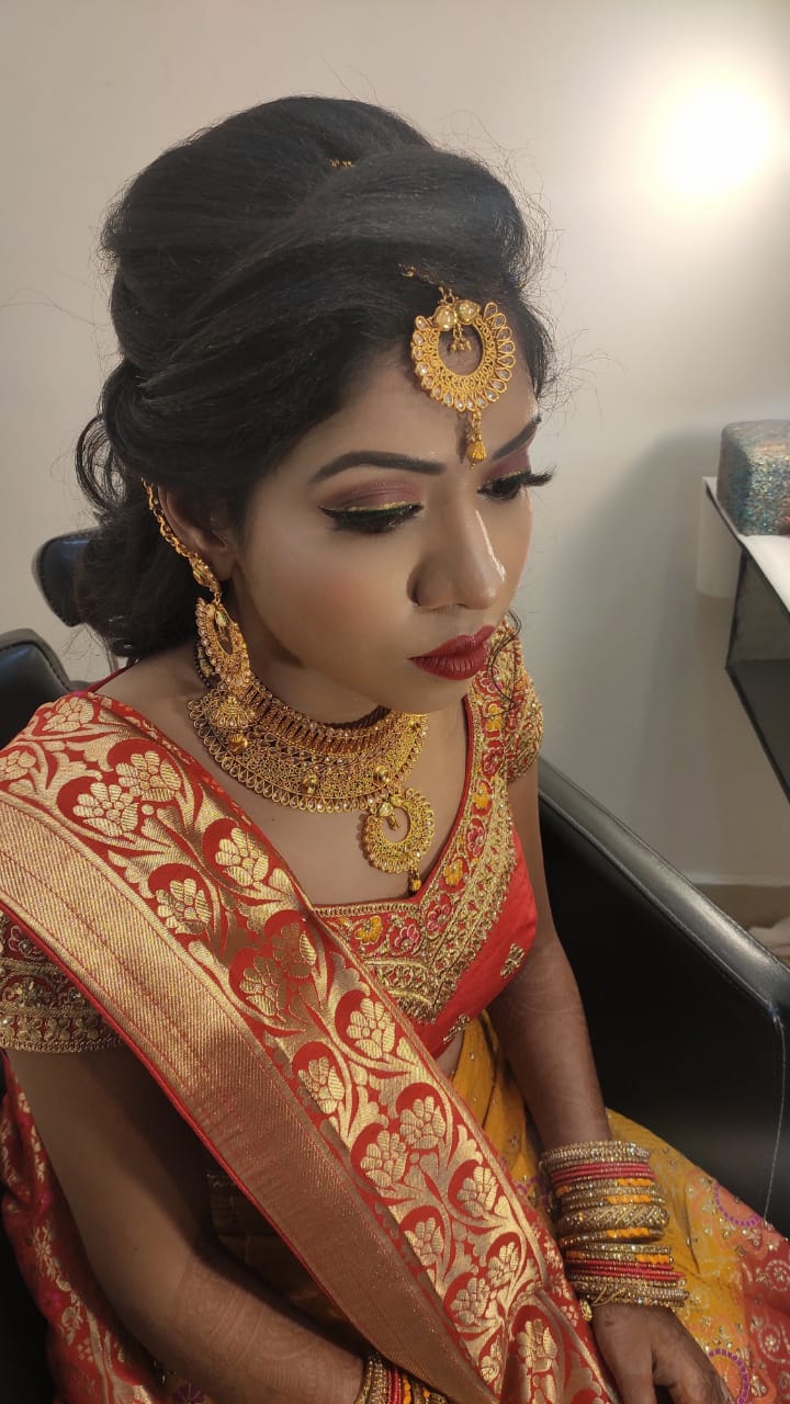 We are professional makeup artists. Bridal look is crafted by understanding the Bride’s skin type, texture and preference and we creates a look that is seamless and best suited for the occasion. When you look beautiful , you feel beautiful. Keeping in mind that all eyes are on the bride to be on her big day. We are known for the personal attention and the focus on the detailing for the perfect look of the bride. It will be our absolute pleasure to assist you in the best days of your life. Give us the privilege to for your Big day and we promise to make every moment special for you! # Bridal Makeup Artist , # bridal makeup , # wedding makeup, # Engagement Makeup , # wedding makeup artist , # bridal hair and makeup , # best bridal makeup