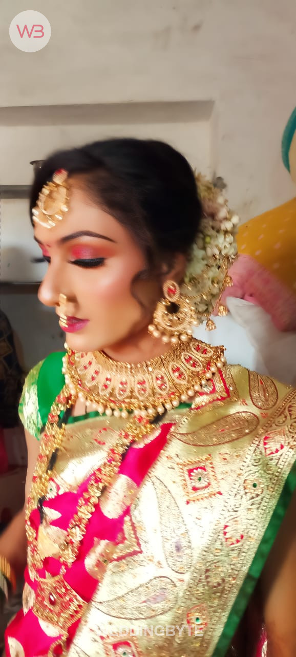 We are professional makeup artists. Bridal look is crafted by understanding the Bride’s skin type, texture and preference and we creates a look that is seamless and best suited for the occasion. When you look beautiful , you feel beautiful. Keeping in mind that all eyes are on the bride to be on her big day. We are known for the personal attention and the focus on the detailing for the perfect look of the bride. It will be our absolute pleasure to assist you in the best days of your life. Give us the privilege to for your Big day and we promise to make every moment special for you! # Bridal Makeup Artist , # bridal makeup , # wedding makeup, # Engagement Makeup , # wedding makeup artist , # bridal hair and makeup , # best bridal makeup