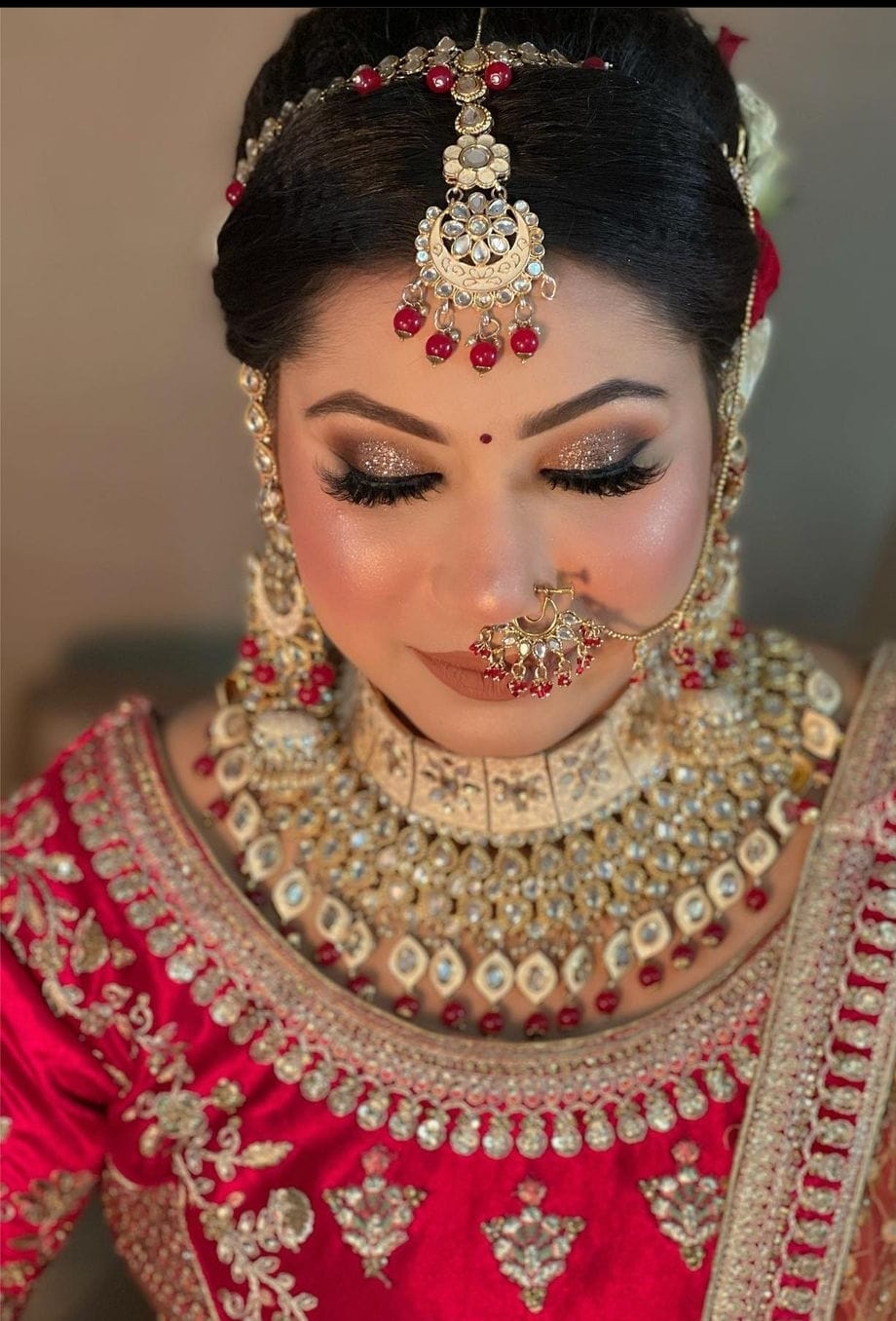 Expertise in Bridal Makeup: Twinkle Jain has a thorough understanding of Indian bridal makeup, seamlessly mixing traditional techniques with new trends. Her artistic ability and attention to detail allow her to enhance each bride's innate beauty, resulting in breathtaking bridal transformations that leave a lasting impact.