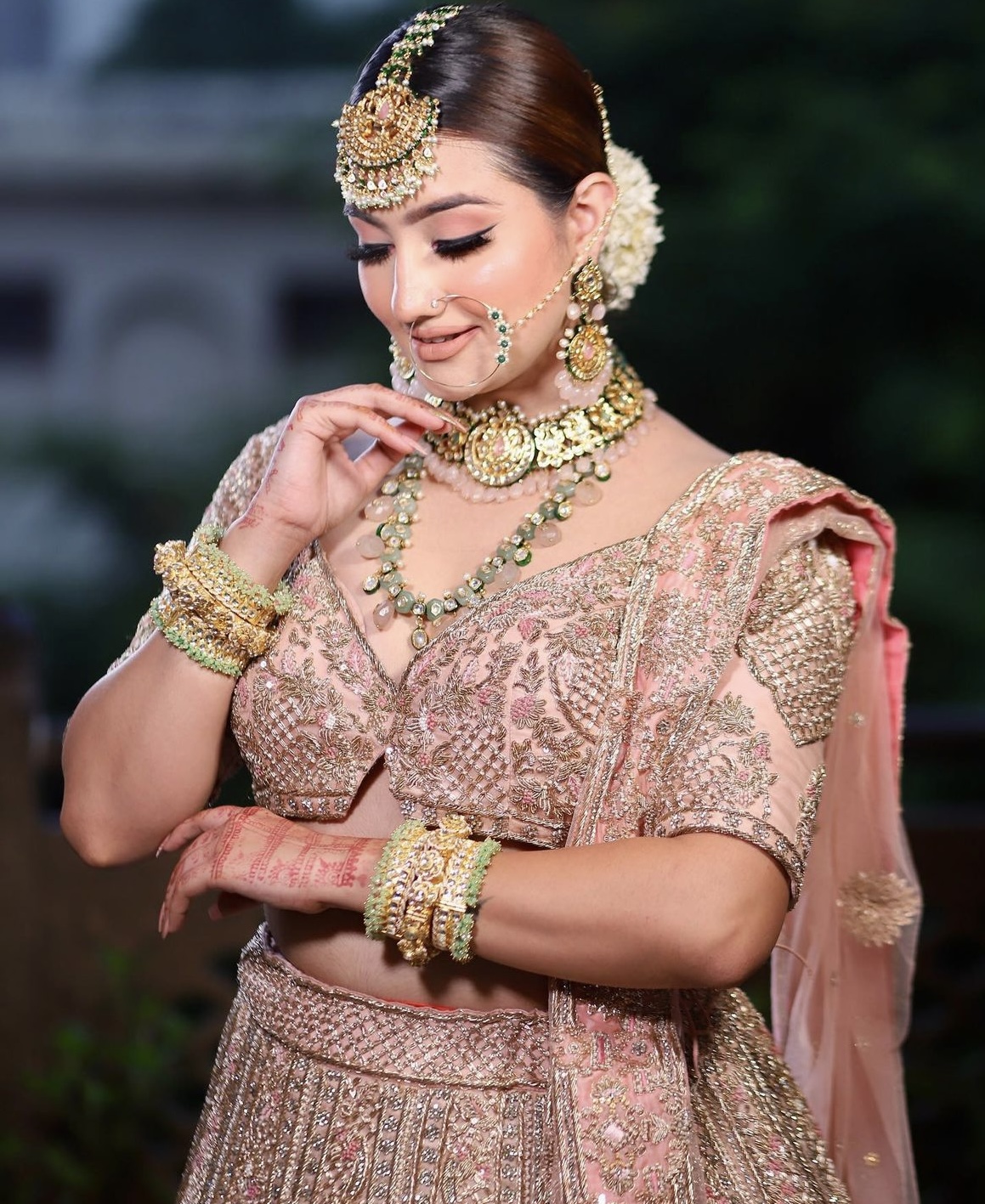 the bride's makeup elevates her elegance and grace, making her the focus of